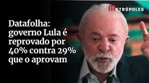 Pesquisa Datafolha divulgada pelo site do jornal “Folha de S.Paulo” neste sábado (2) aponta que 40% dos eleitores brasileiros avaliam o governo do presidente Lula (PT) como ruim ou péssimo e 29% com ótimo ou bom. Dos entrevistados, 29% avaliam o governo como regular e 1% não respondeu.